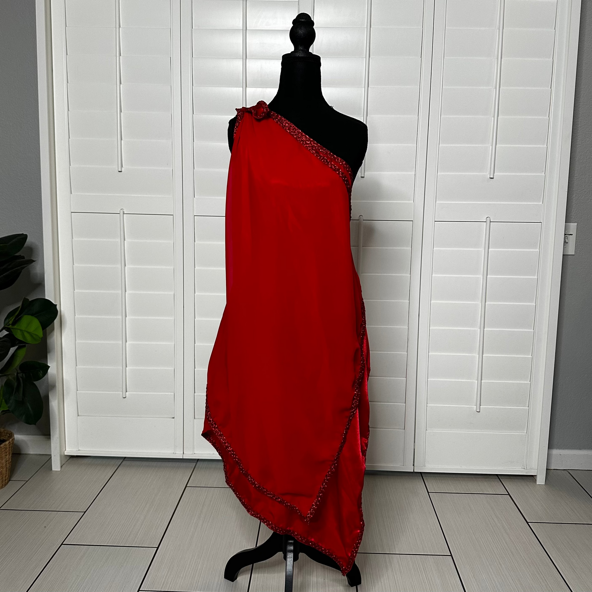 Este elegante vestido de un solo hombro está confeccionado con doble tela: una capa de suave seda y otra de chiffon, lo que brinda un movimiento fluido y una sensación cómoda al usarlo.